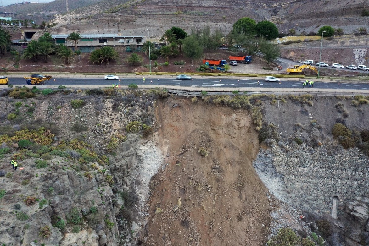 – Part of the new deck occupies the empty space created by the collapse and the entire layout of the GC-1 roadway has been restored in its original position.